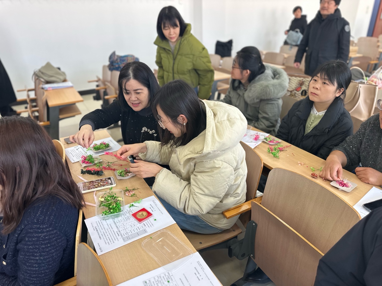 活动尾声,教师们手持作品合影留念,以缕缕幽香定格春日午后,更以匠心匠艺诠释新时代教育工作者"柔肩担使命 巧手绘芳华"的独特风采。
