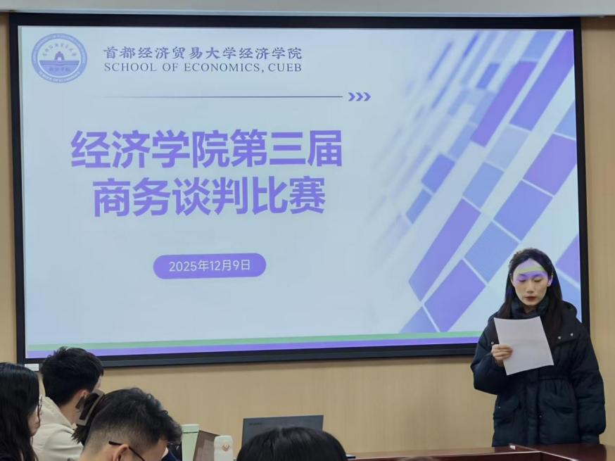 为全面提升研究生商务谈判实战能力与专业素养,锤炼团队协作与临场应变能力,2025年12月9日18:00,经济学院第三届商务谈判决赛在启铸恭温楼A303会议室举行。经初赛选拔,六支队伍晋级决赛。