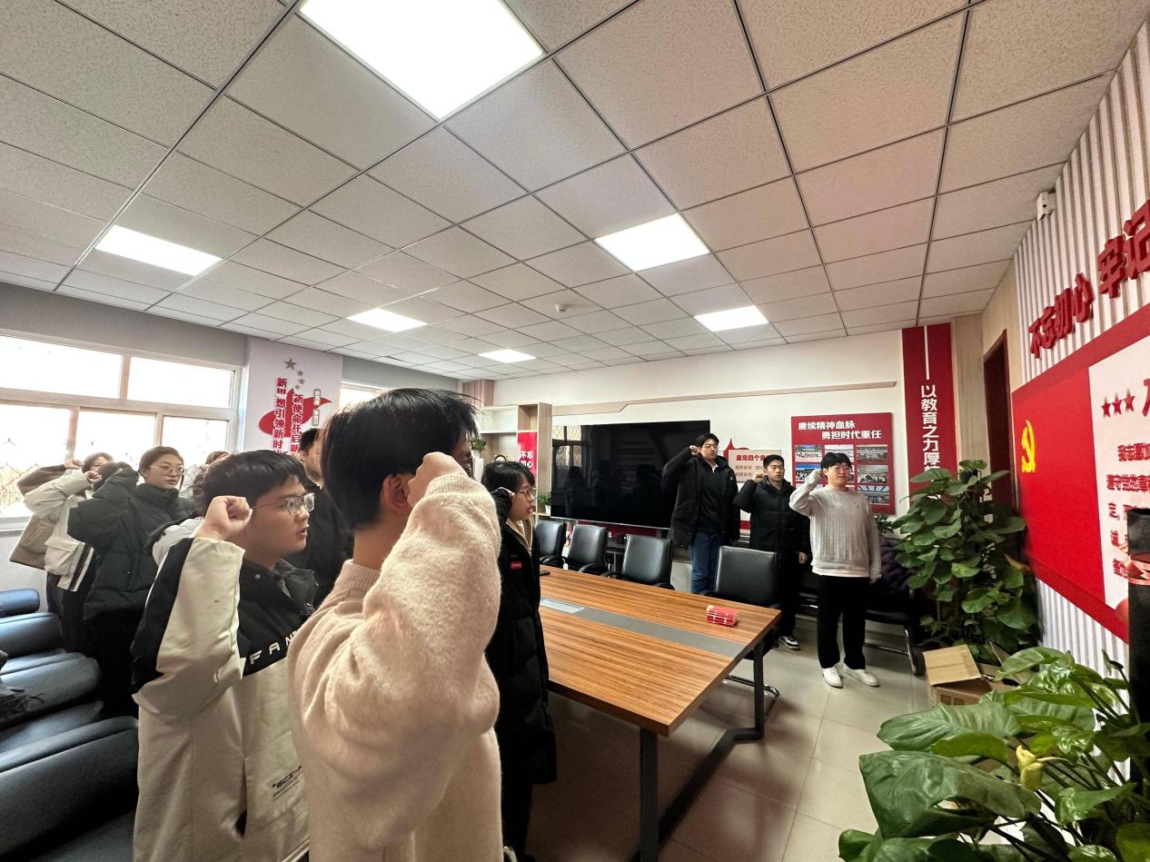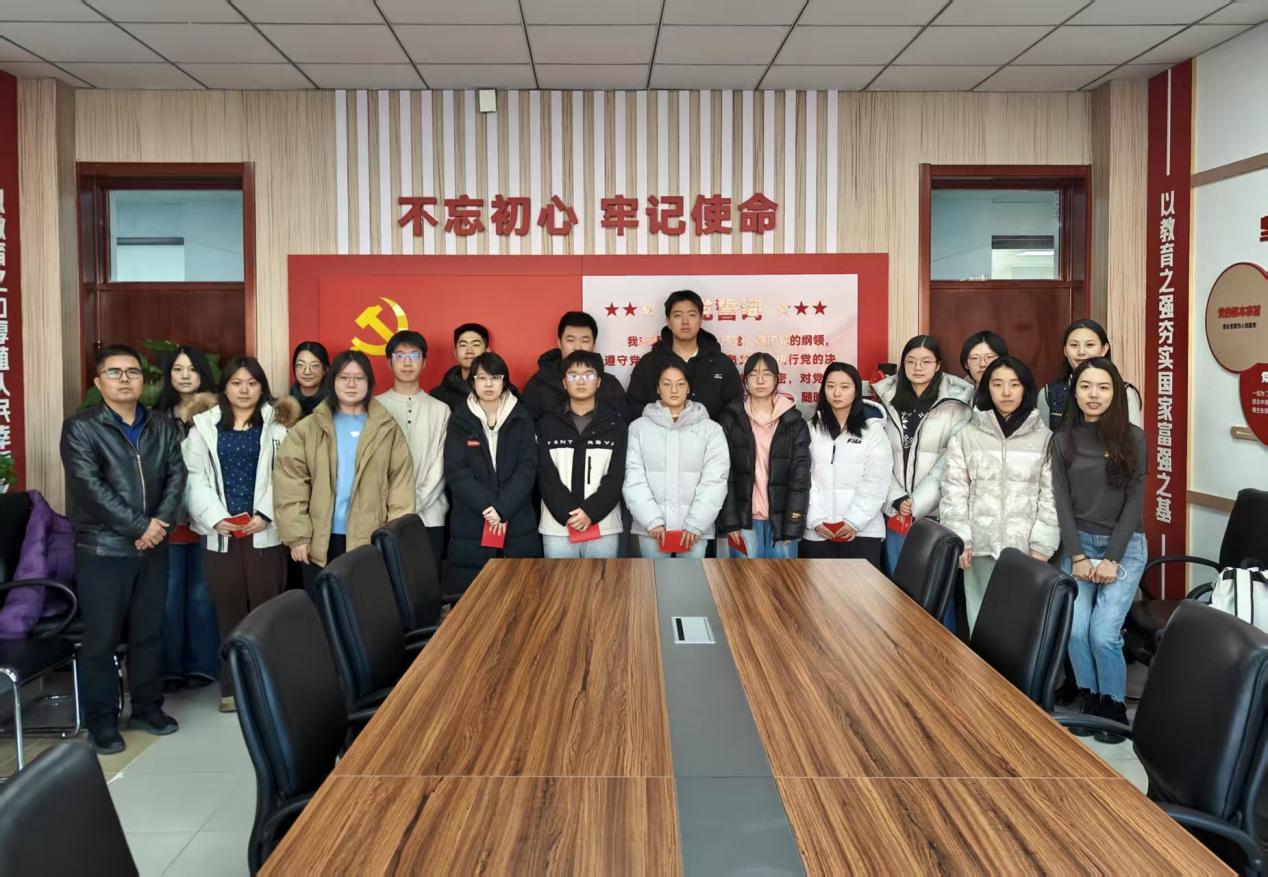 为深入学习贯彻党的二十大和二十届四中全会精神,教育引导新发展党员坚定理想信念、增强党性修养、牢记初心使命,12月5日中午,经济学院党委在学院党员之家举行2025年下半年新发展党员入党宣誓仪式。经济学院党委书记赵家章、党委副书记王美慧、兼职辅导员单凯崧以及2025年下半年新发展的16名预备党员参加仪式。仪式由经济学院团委书记陈晓主持。