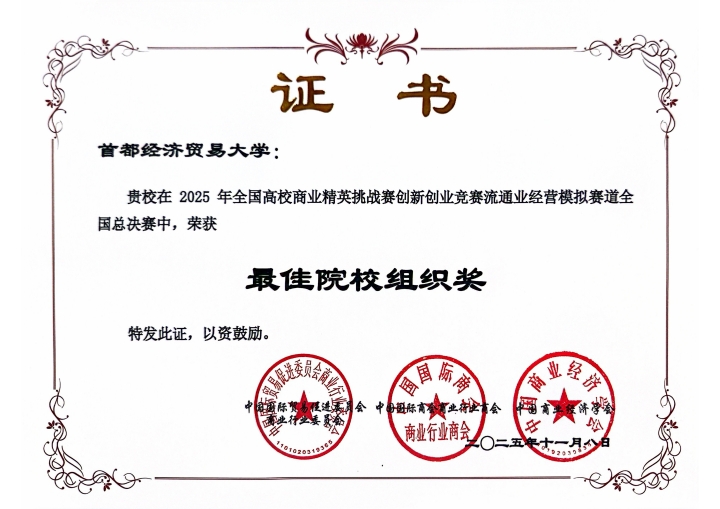 近日,全国高校商业精英挑战赛创新创业竞赛流通业经营模拟赛道全国总决赛圆满收官。历经校赛的初筛、区域赛的角逐、全国赛的巅峰对决,经院学子凭借深厚的专业积淀、灵活的临场应变与高效的团队协作,斩获佳绩——3支队伍勇夺全国一等奖,3支队伍喜获全国二等奖,3支队伍斩获全国三等奖。与此同时,我校因组织工作严谨有序、保障有力,荣获“最佳院校组织奖”,这既是对学校赛事组织能力的充分肯定,也是全院师生凝心聚力、共促发展的生动写照。