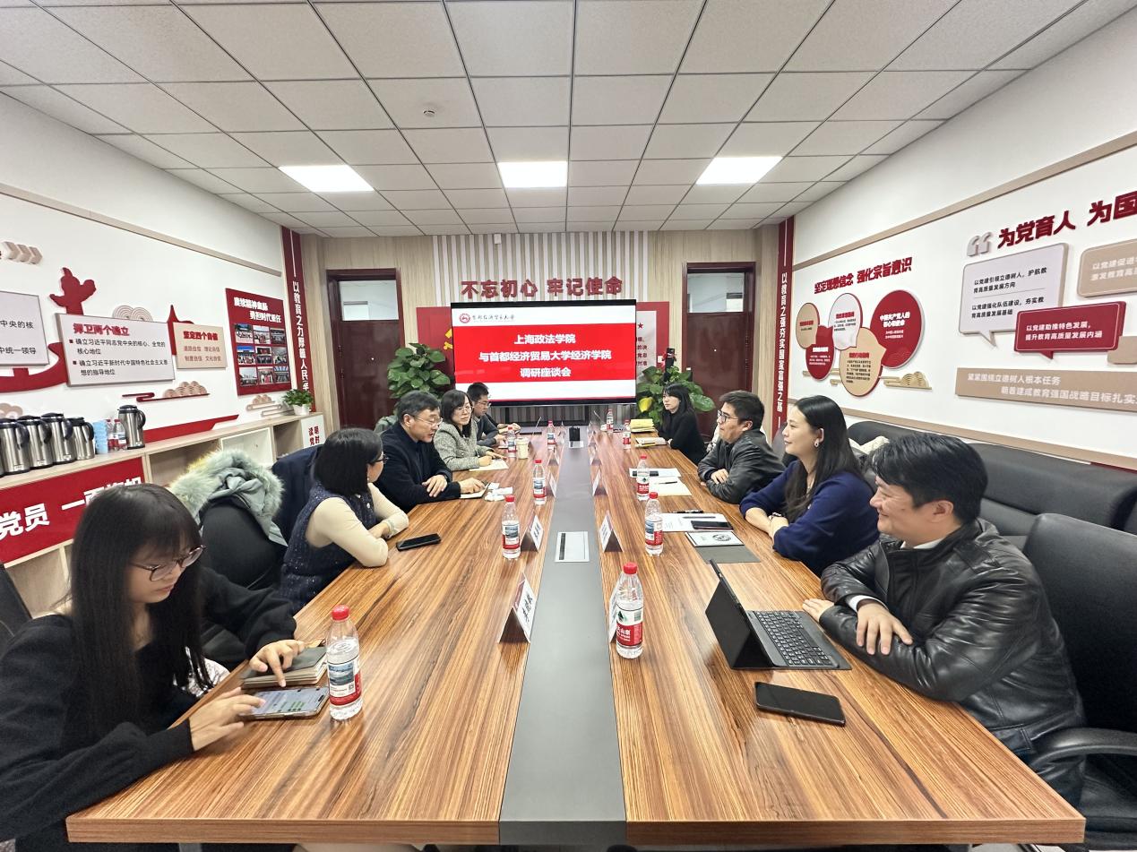 赵家章对上海政法学院一行的到来表示热烈欢迎,并对学院党建工作、师资队伍、专业学科建设、人才培养等情况进行了介绍。他表示,学院拥有雄厚的师资力量和完整的学科布局,在党建与业务融合方面具有一定优势,多年来为服务首都经济社会发展做出了积极贡献。