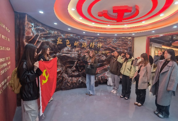 上午9时,培训团队准时抵达河北镇红色文化展馆。进入展馆,党员同学们重温了入党誓词,铮铮誓言在展馆中回荡,是青年学生对信仰的坚定承诺。