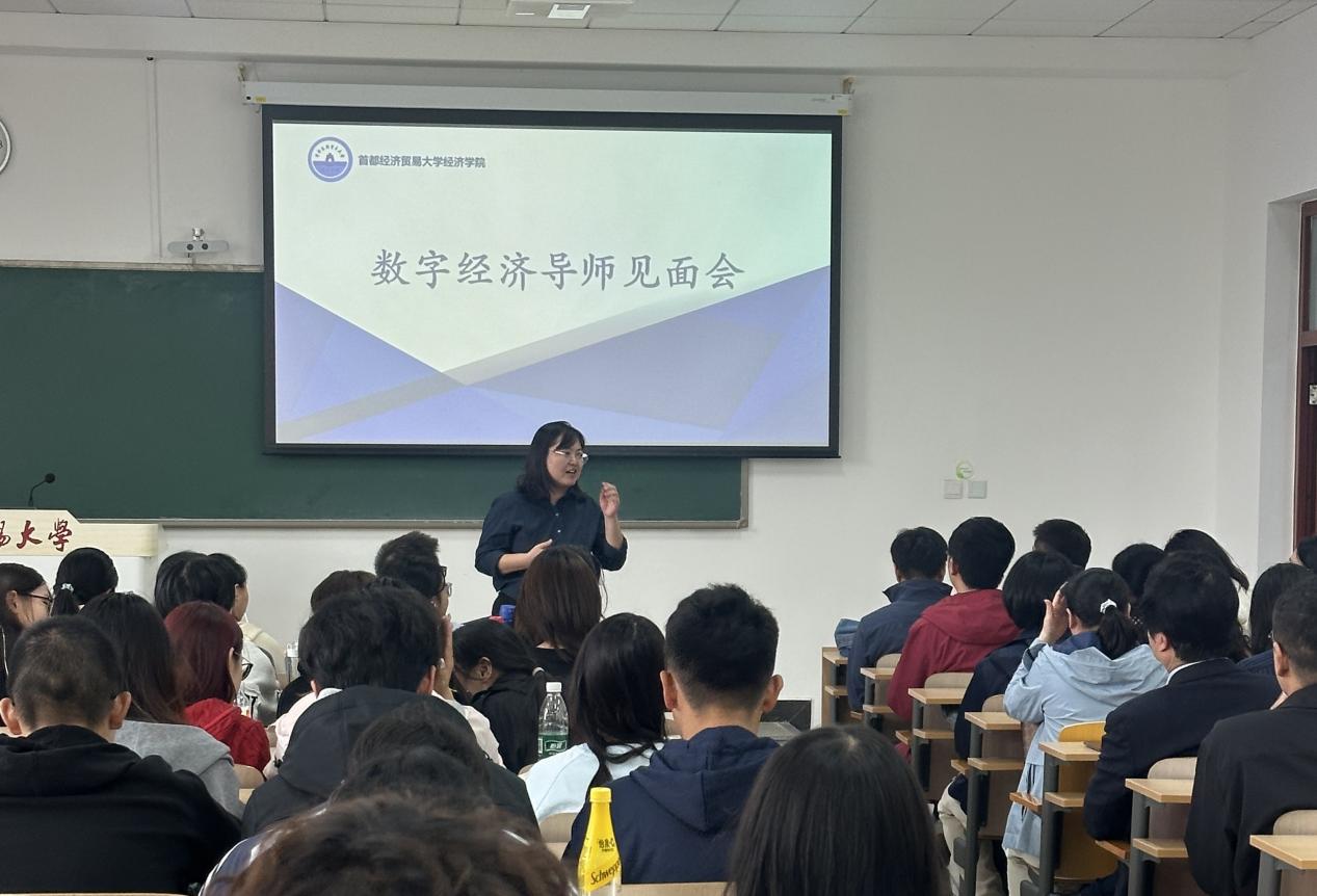 在专业培养方向上,杜雯翠教授特别指出,数字经济专业以经济学为核心基础框架开展人才培养工作,她叮嘱同学们务必重视经济学基础课程的学习,扎实掌握理论知识,为后续深入探索数字经济领域的专业内容、提升实践应用能力筑牢根基。此外,她还表示,学院后续将围绕数字经济主题,策划并组织一系列的调研活动与社会实践项目,为同学们搭建理论联系实际的平台,助力大家更好地理解专业知识、提升解决实际问题的能力。同时,她也鼓励同学们在日常学习生活中,主动加强与导师、同学之间的沟通交流,分享学习心得、探讨专业问题,共同营造积极向上、互帮互助的良好学习氛围。