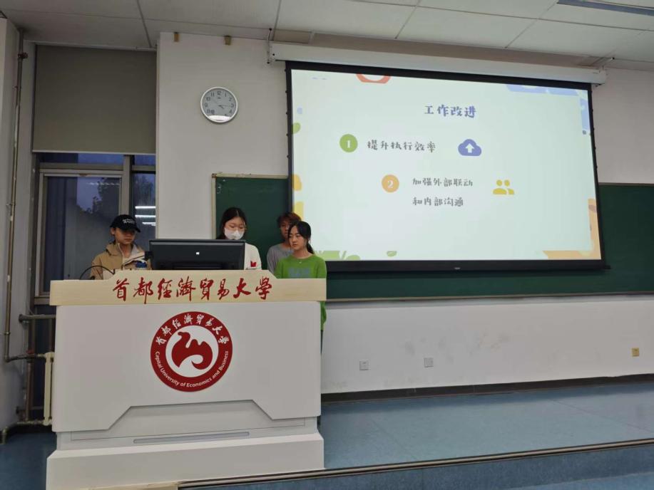 最后,陈晓对本次例会进行了总结。她首先肯定了经济学院学生会工作的成功。她表示,希望大家能够将昔日的成功转化为当前工作的动力,不仅要铭记过去的辉煌时刻,更要从中汲取力量,勇往直前。与此同时,她激励大一同学们踊跃投身于各项工作中,在这个充满无限可能的新环境、新集体中,同时也应发奋学习,把自身的学习和发展视为航行的罗盘,勇敢地展现自我,坚定不移地追求心中的目标。
