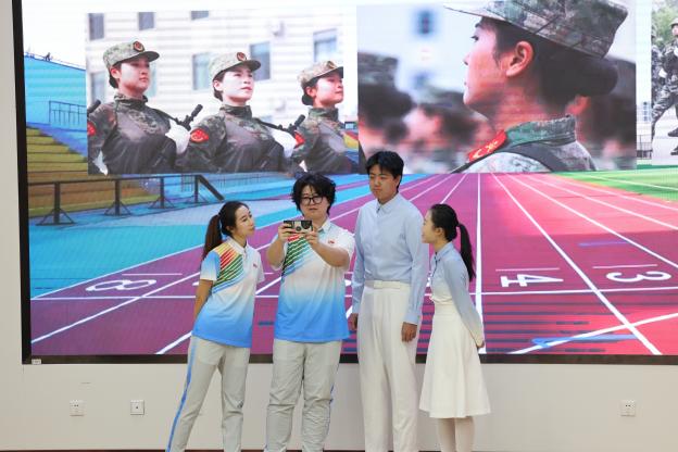 在“赤子之心 时代和声——经济学院2025年服务保障纪念中国人民抗日战争暨世界反法西斯战争胜利80周年大会展示”环节,舞台剧《青春的检阅》通过三幕场景,生动再现了经院师生服务保障纪念中国人民抗日战争暨世界反法西斯战争胜利80周年大会的历程,展现了新时代青年坚守责任、热血奋斗的青春风采。师生们顶骄阳、冒夜雨,用严谨细致履行使命,以无私奉献诠释担当。剧终,全体成员合唱《请你检阅》,史晨予正步走向舞台中央行标准军礼,20名师生以庄重姿态致敬初心,用青春的汗水与付出接受检阅,彰显青年一代的使命担当。