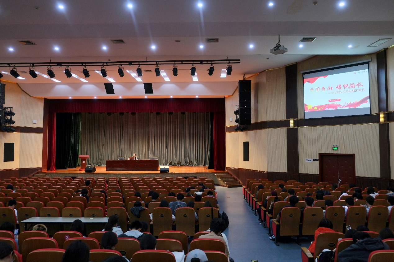 9月23日上午10点,经济学院在启铸恭温楼华侨礼堂举办了“党团为向,旗帜领航”教育讲座。本次讲座由经济学院团委书记陈晓主讲,2025级全体本科生参会。