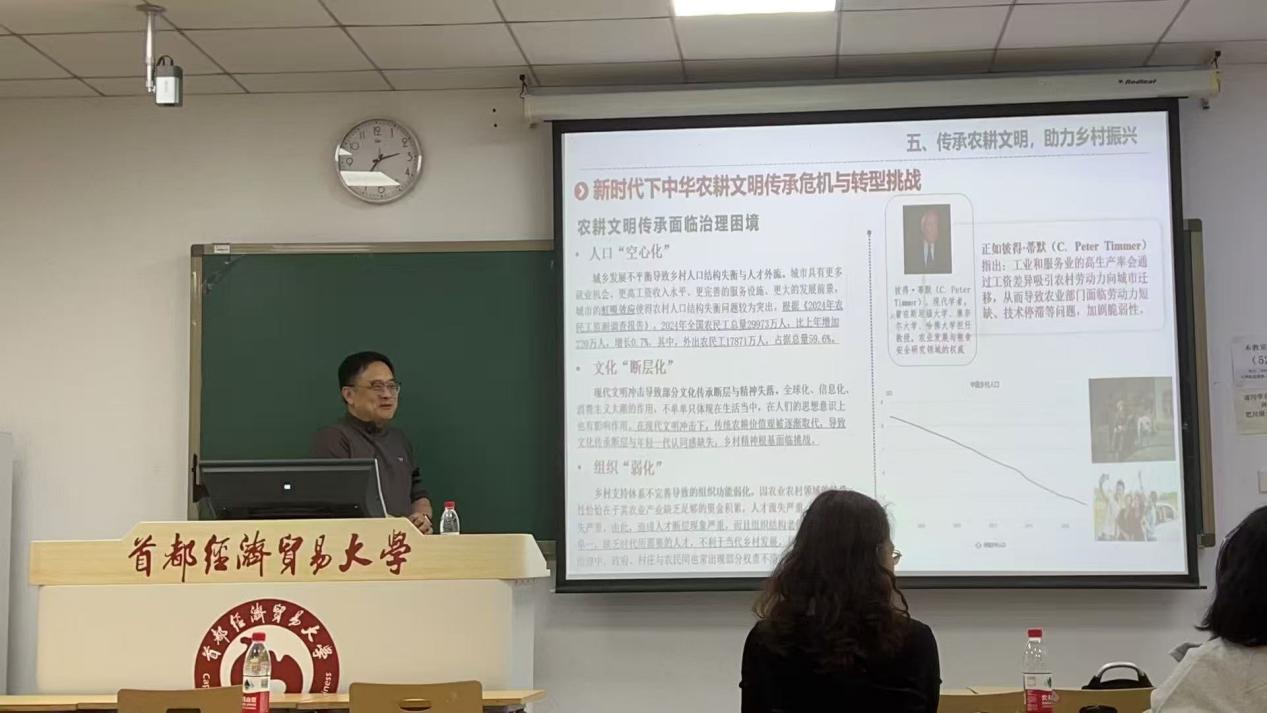 10月30日下午,首都经济贸易大学特邀中国农业大学经济管理学院副院长、国家农业农村发展研究院研究员李军教授作专题学术报告,讲座主题为“农耕文明赋能乡村振兴的历史逻辑与现实价值”。本次讲座由经济学院副院长杜鹏程教授主持,现场学术交流氛围浓厚。