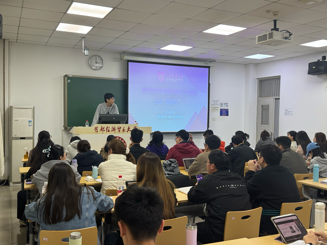 11月6日下午,经济学院在启铸恭温楼B107举办“资本市场开放是否促进了制造业企业‘稳增长’?”学术讲座。本次讲座邀请到中国地质大学(北京)经济管理学院经济学系讲师、北京师范大学经济学博士郭也担任主讲嘉宾,学院副院长杜鹏程主持。