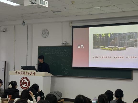为深入学习贯彻党的二十届四中全会精神,切实加强学生思想政治引领与法治安全教育,近期,经济学院组织学院本、硕、博,以班级为单位,集中开展了以“学习全会精神、深化诚信教育、筑牢反诈意识”为主题的系列班会活动。