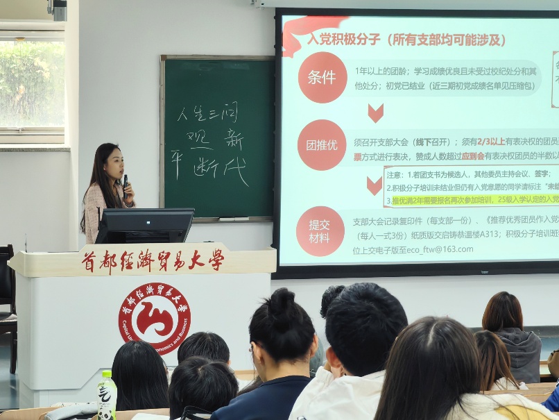 首先,陈晓结合实际情况,详细讲解了入团与入党的申请流程,明确了入团、入党的具体要求,还提醒大家撰写申请书时需注意的事项。其次,陈晓进一步说明成为入党积极分子的必备条件,并特别提醒各团支部书记与委员,本次材料填报要求与以往存在差异,务必高度重视;线下召开会议后也应当及时填写、提交会议记录。
