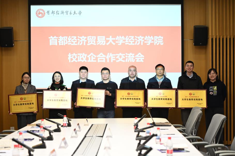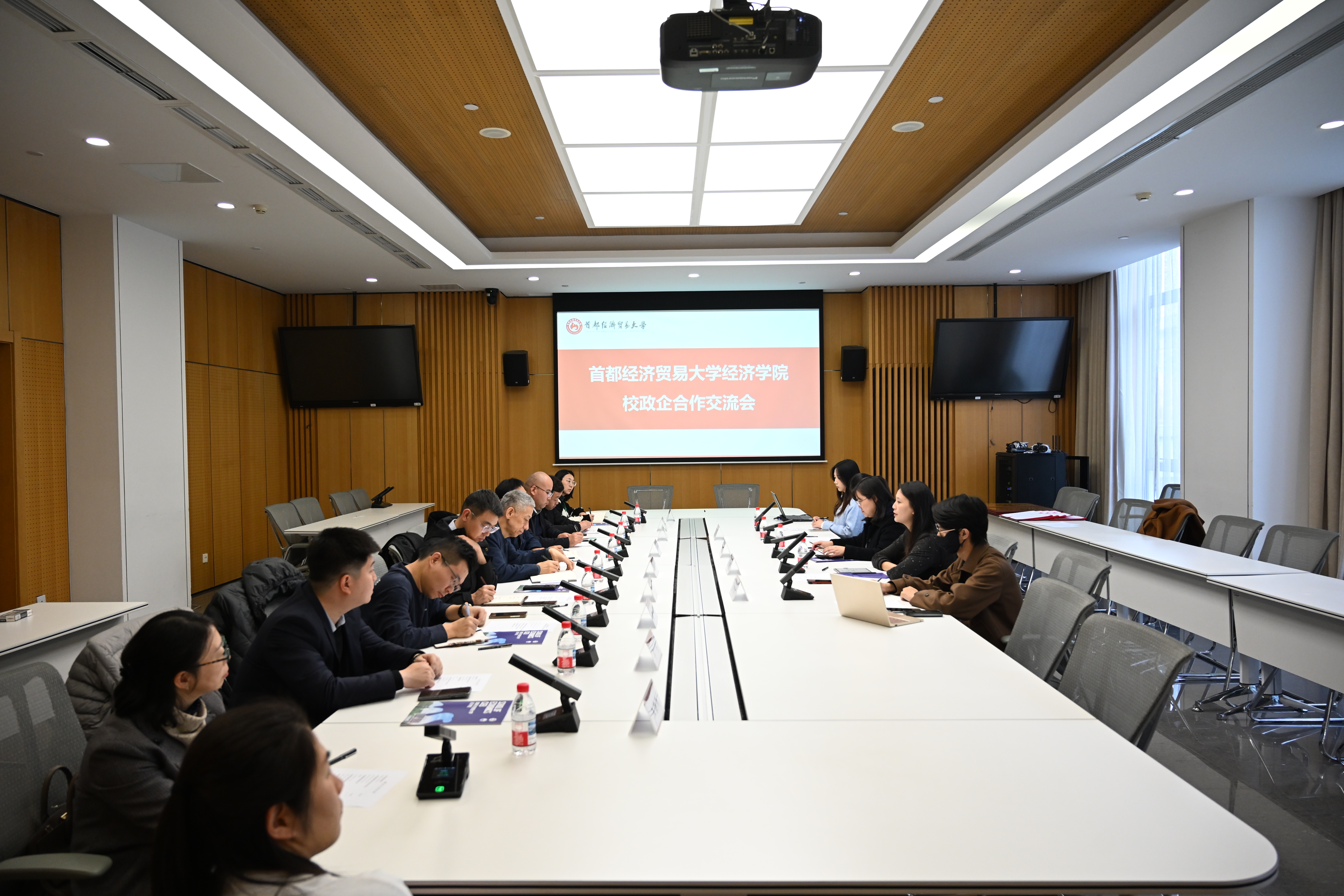 10月28日下午,经济学院在博远楼天朗厅举办校政企合作交流会。云岗街道办事处、云岗街道张家坟村经济合作社、中经网数据有限公司、兴业银行股份有限公司北京东单支行、北京极致车网科技有限公司、北京星月小船健康管理有限公司等多家单位代表莅临现场。经济学院院长杜雯翠、党委副书记王美慧、专职辅导员王帆、兼职辅导员刘适然出席本次活动。会议由王美慧主持。