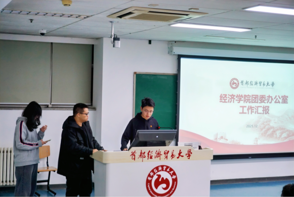 12月24日17时20分,经济学院团委在博学楼阶梯2教室顺利召开2025 - 2026学年第一学期期末例会。团委书记陈晓,副书记胡若恬、李泽宇、王辰阳、王笛,各部门负责人以及全体团委成员共同参会。此次会议重点围绕学期总结与未来工作规划展开。会上,各部门负责人全面且细致地汇报了本学期工作任务的完成情况,并阐述了后续工作规划。会议还共同回顾了本学期团委开展的各项工作,对每一位成员的辛勤付出与努力给予了充分肯定。