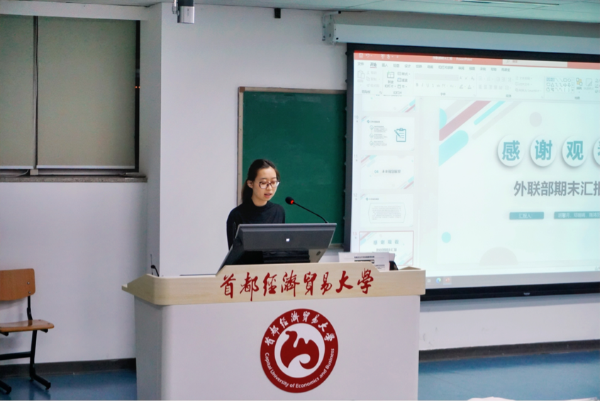 胡若恬对各部门汇报内容进行总结,肯定了全体成员本学期的付出与努力,对未来工作提出新的期望,同时祝愿同学们生活顺遂,在期末考试中取得理想成绩。
